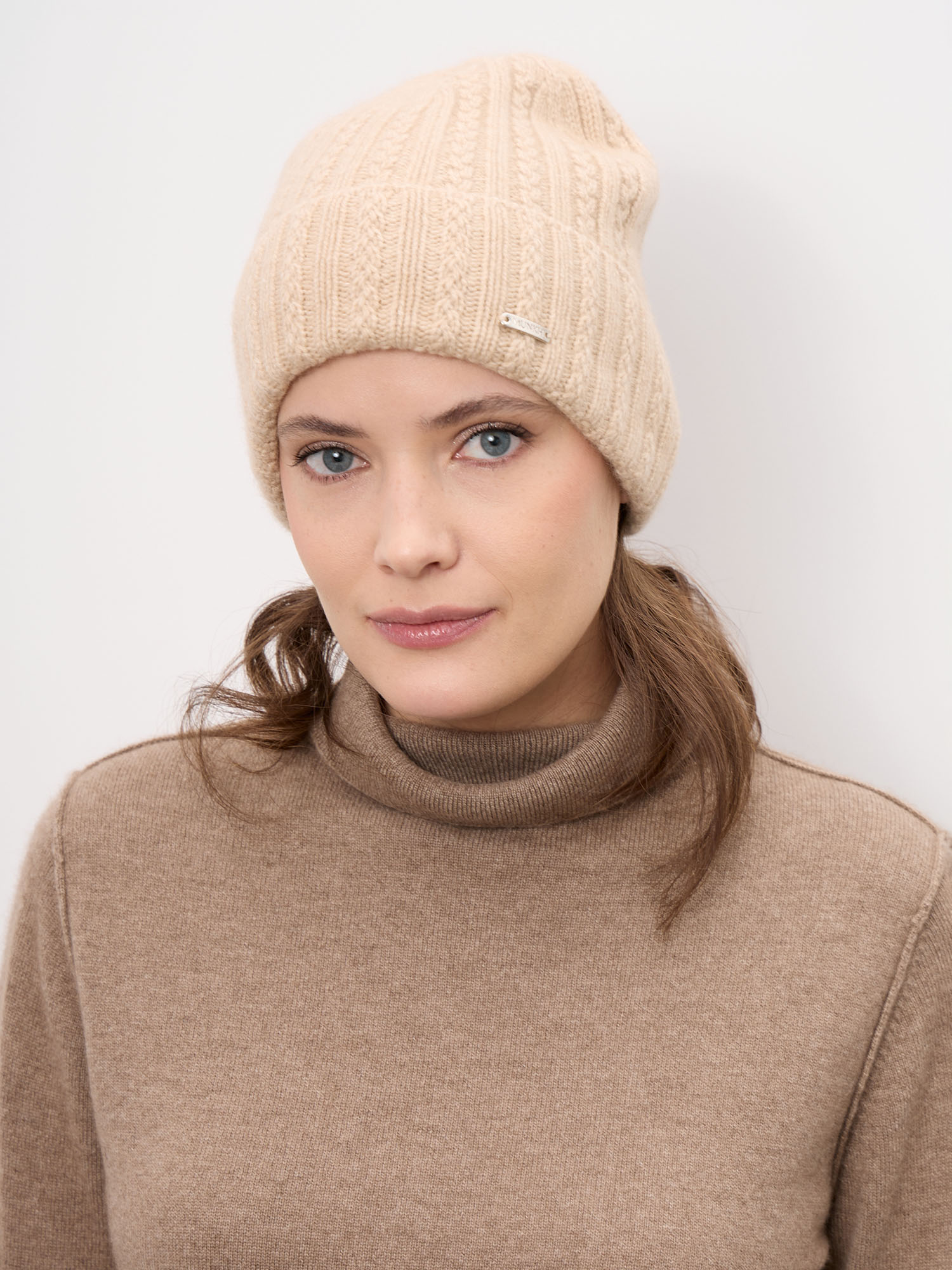 Шапка из кашемира 04337 бежевая