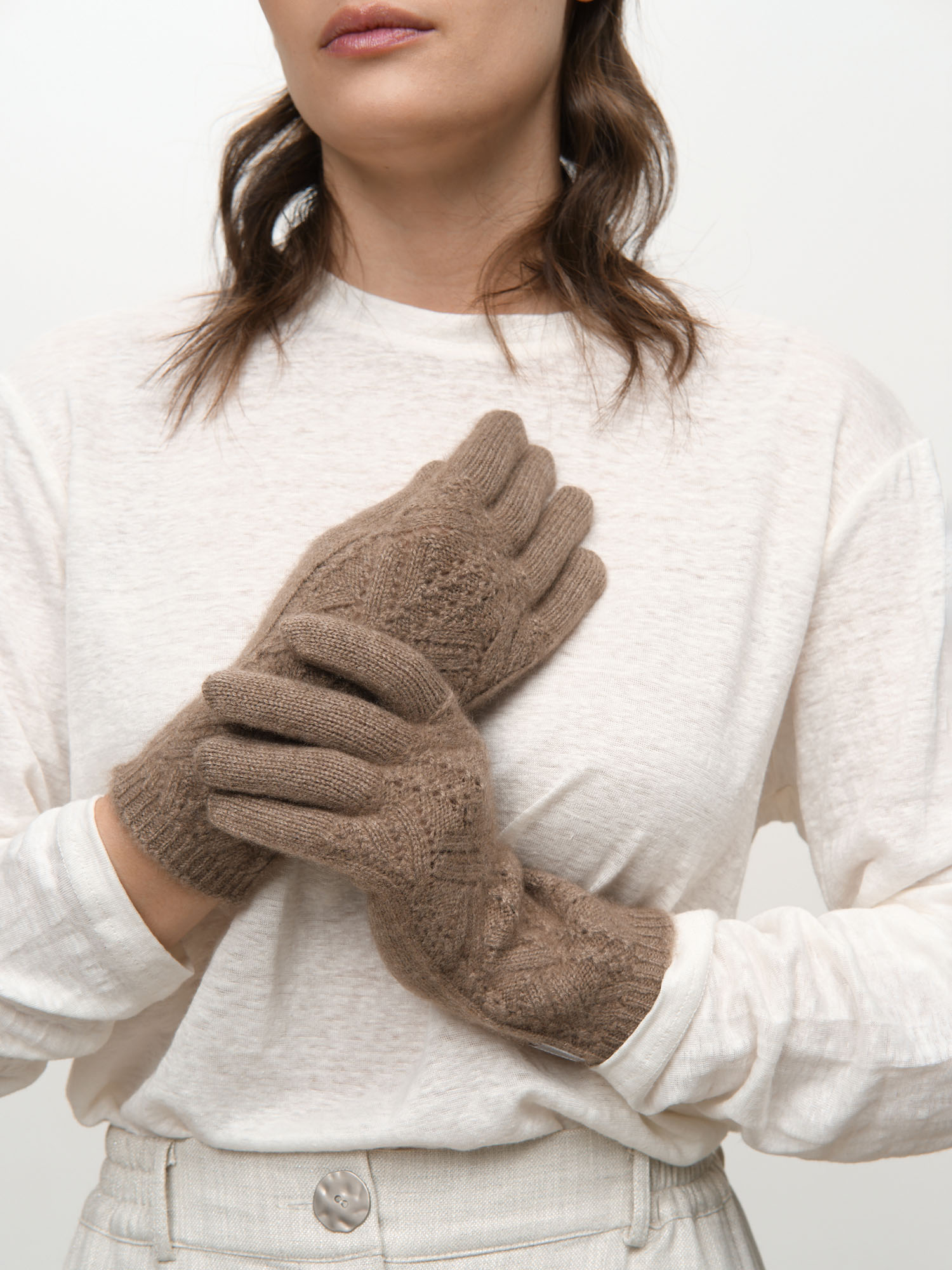 Изделие изготовлено из 100% кашемира - благородного материала, известного своей невероятной мягкостью, легкостью и способностью прекрасно сохранять тепло. Благодаря натуральному составу перчатки обеспечивают комфорт даже в сильные морозы, позволяя коже дышать.