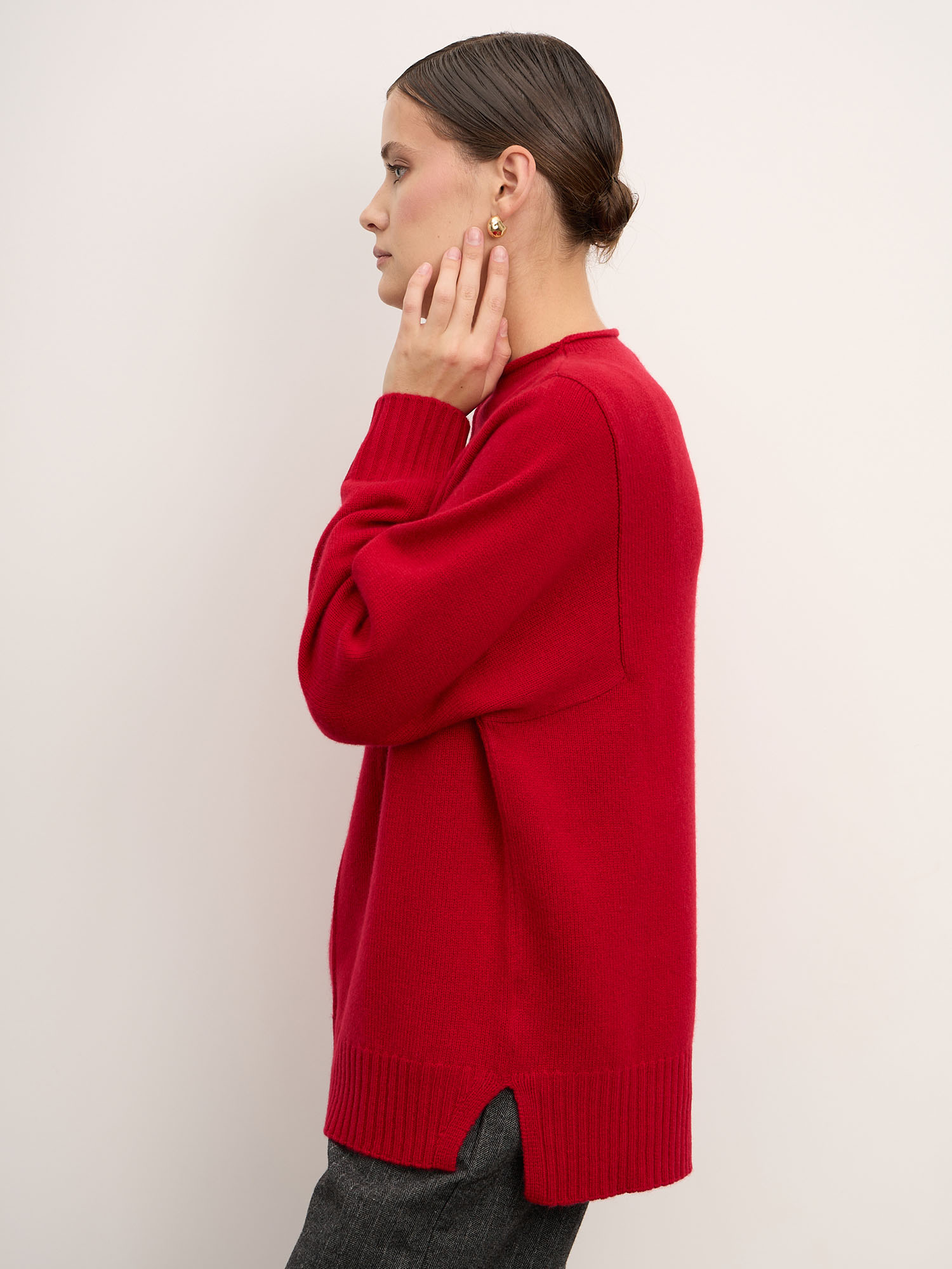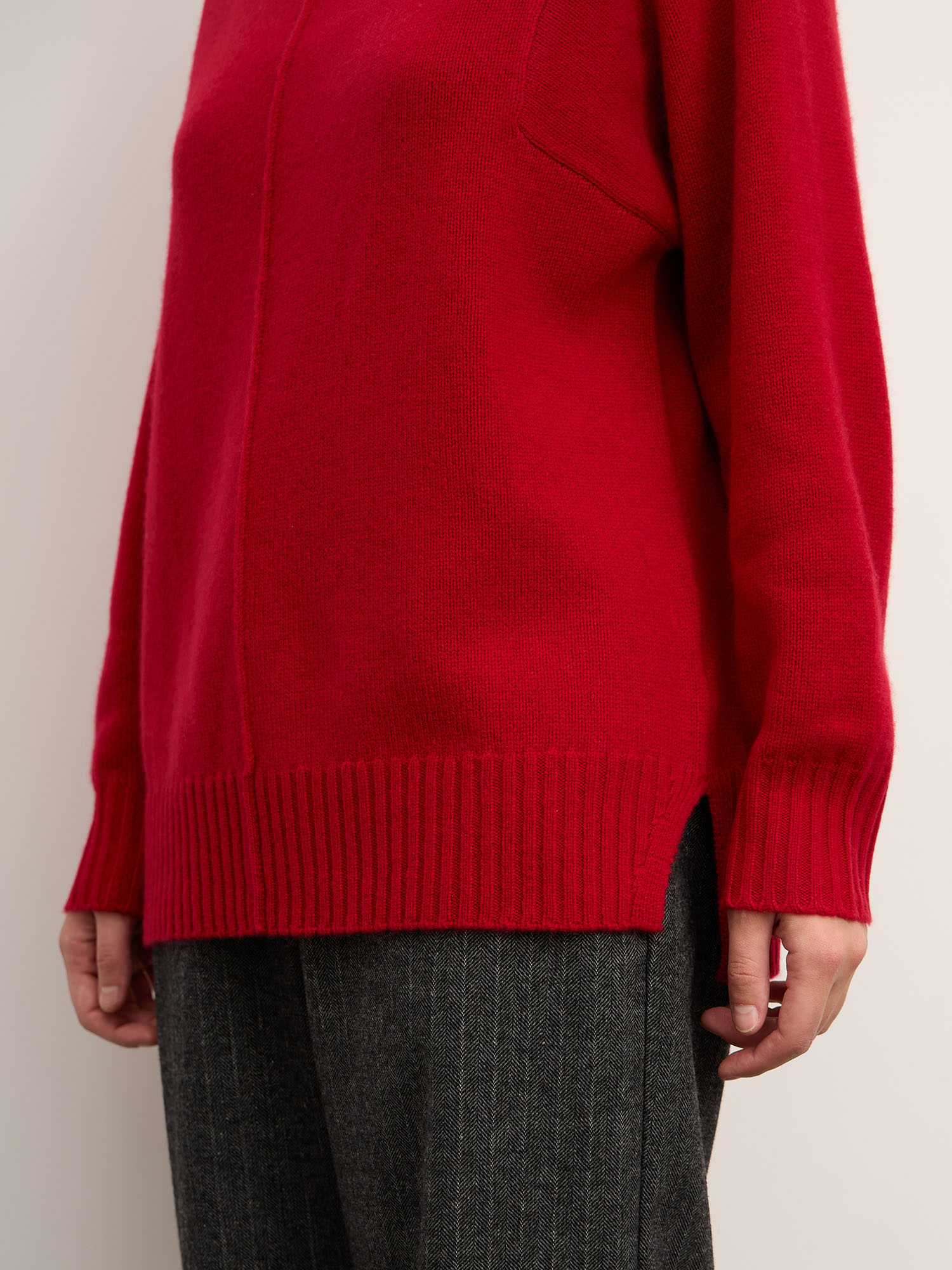 Яркий акцент базового гардероба: сочетается с классическими брюками, юбками и джинсами. Идеален под пальто нейтральных оттенков — серого, бежевого, шоколадного. Добавит выразительности и тепла осенне-зимнему образу.