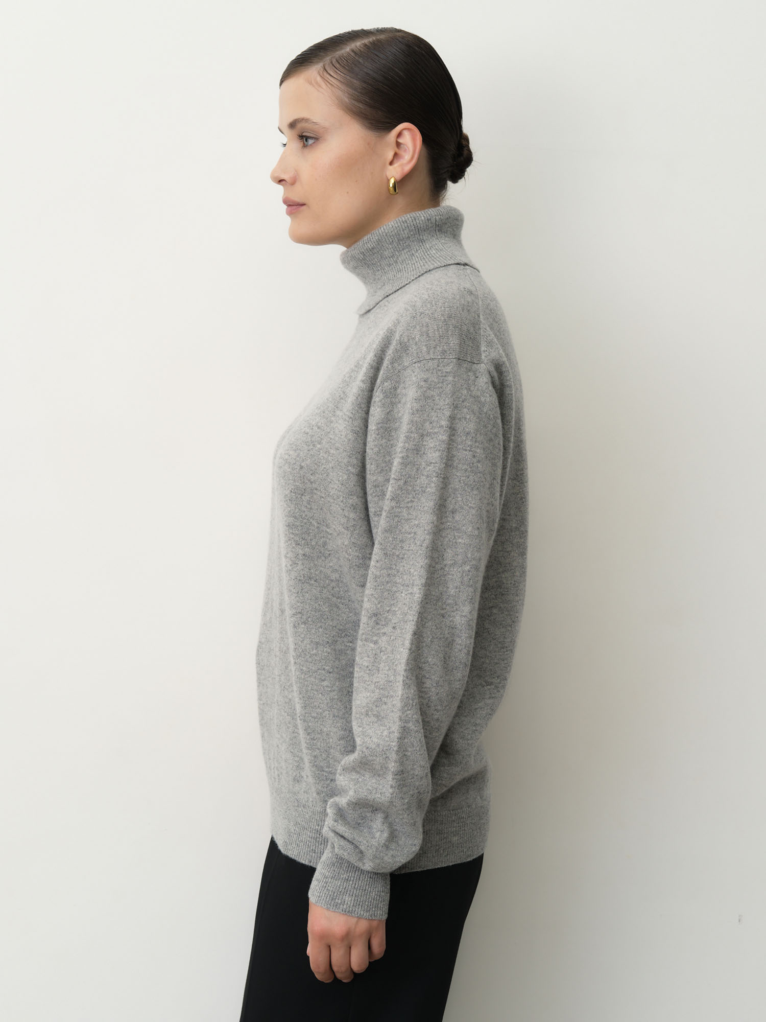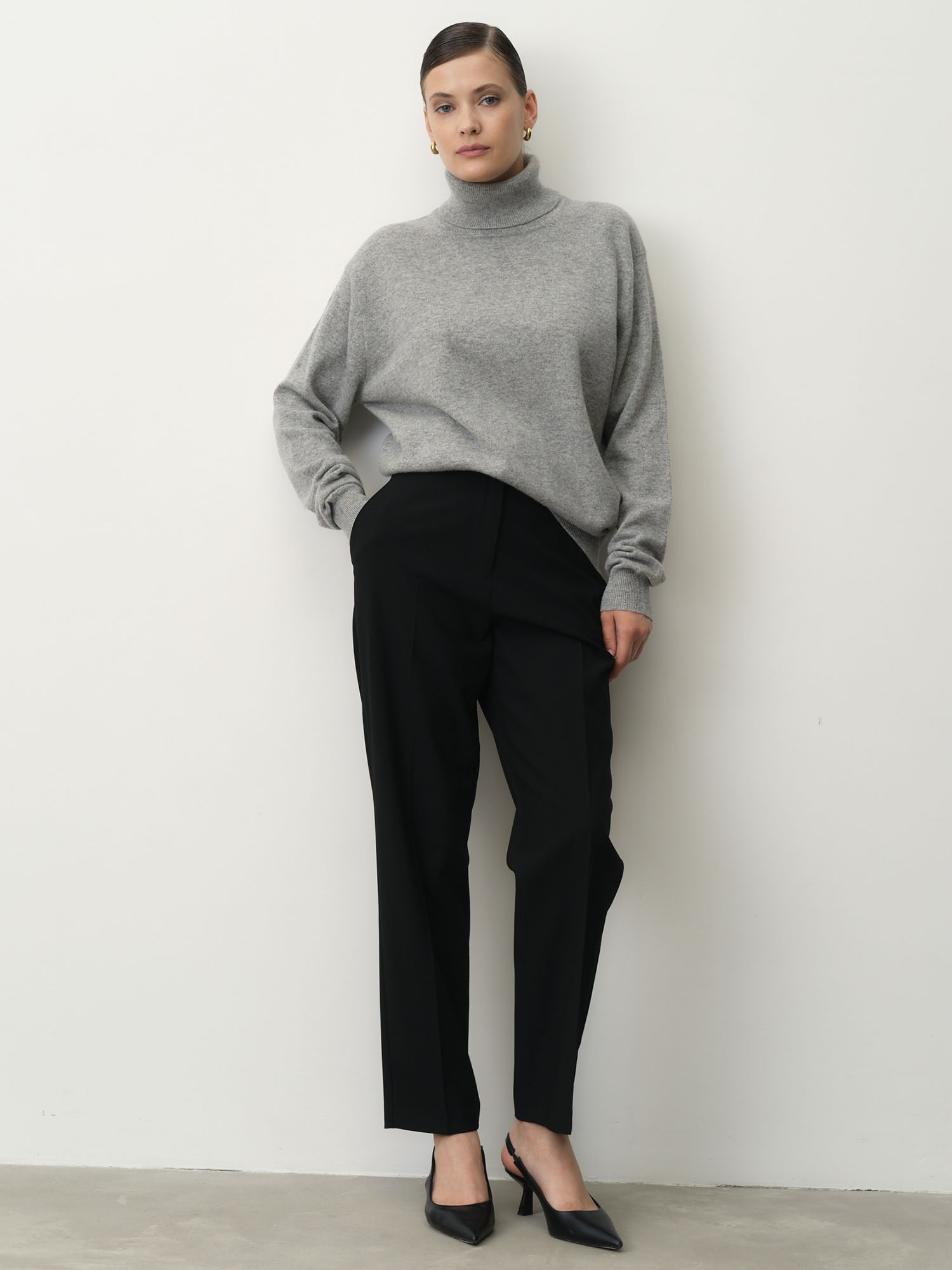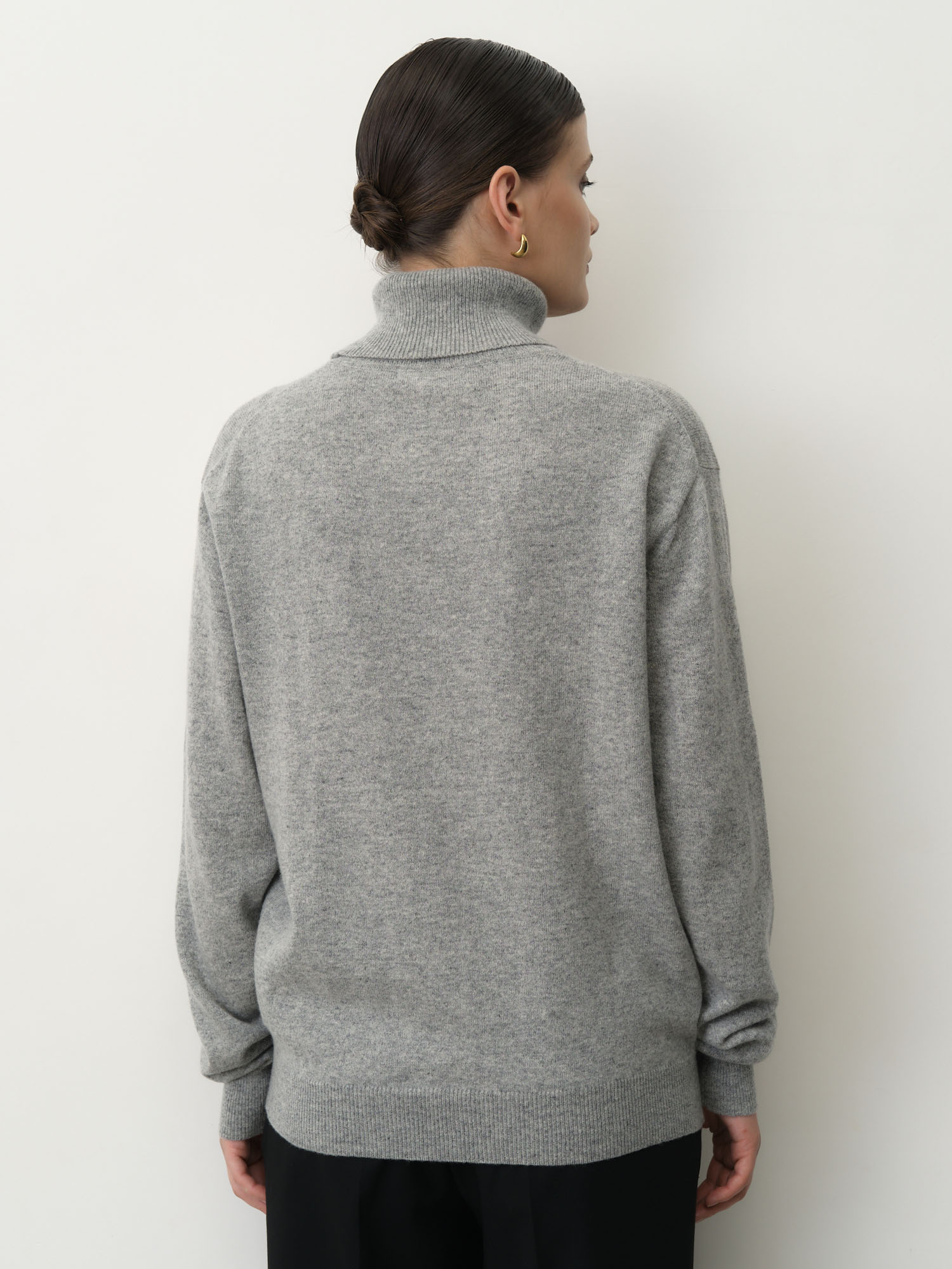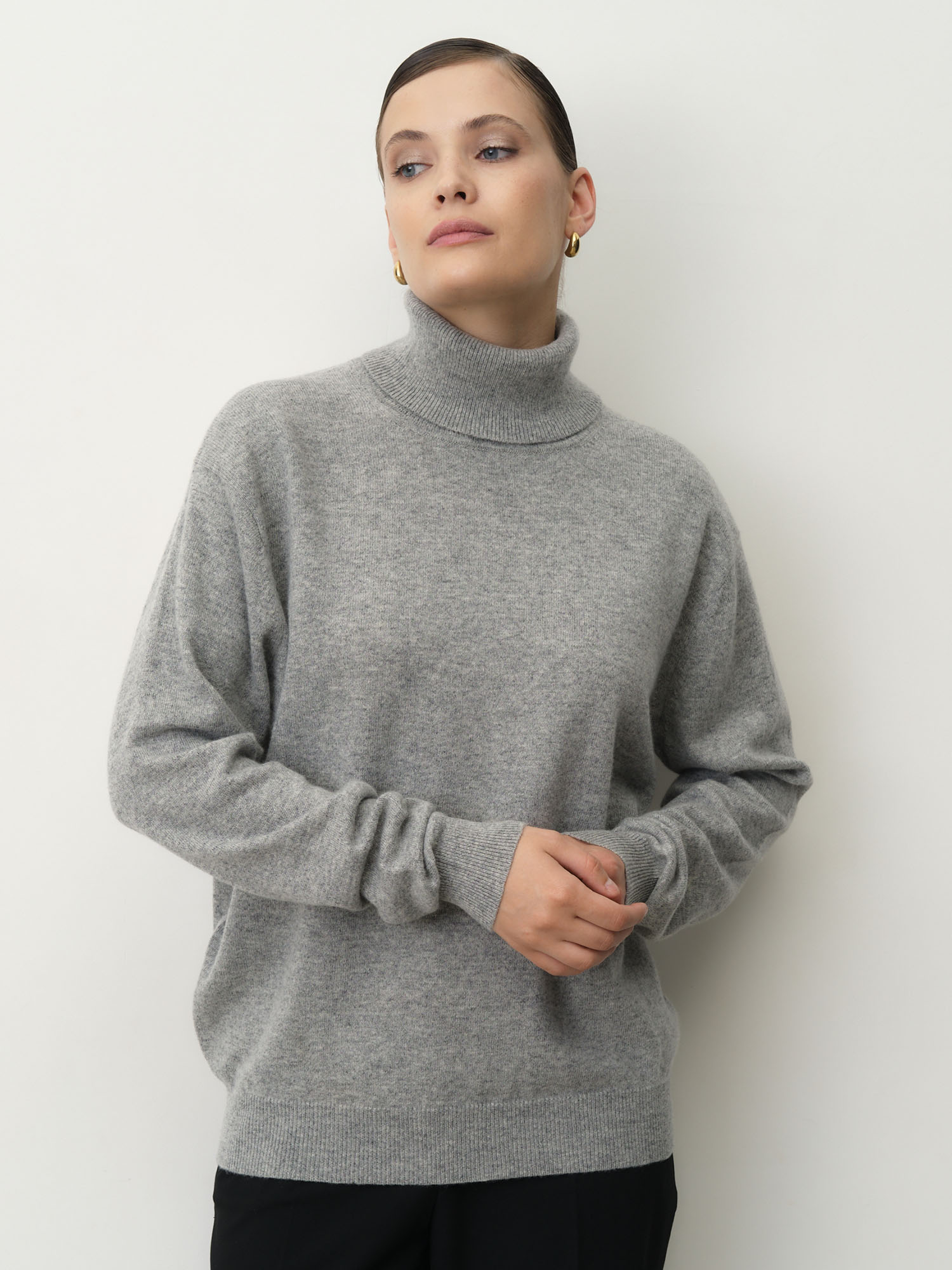 Элегантная водолазка из премиального сочетания кашемира и шерсти в благородном сером цвете – незаменимый элемент стильного гардероба для прохладного сезона. Эта модель воплощает идеальный баланс между изысканной роскошью и повседневной практичностью, обеспечивая непревзойденный комфорт при любой погоде. Особое переплетение кашемировых и шерстяных волокон создает уникальный материал с превосходными теплосберегающими свойствами. Он эффективно удерживает тепло тела даже в самую холодную погоду, оставаясь при этом легким и не создавая ощущения тяжести. Высокий воротник не только защищает от холода, но и придает образу элегантную завершенность. Универсальный серый цвет – беспроигрышное решение для любого гардероба. Он гармонично сочетается с одеждой различной цветовой гаммы, от классических нейтральных тонов до ярких акцентных оттенков. Идеальная посадка по фигуре обеспечивает свободу движений без потери силуэта. Эластичные манжеты и воротник сохраняют форму даже после многократных стирок. Эта водолазка – универсальный предмет гардероба, который можно стилизовать множеством способов. Носите ее отдельно или под пиджак для создания делового образа, сочетайте с джинсами для повседневного стиля, или используйте как базовый утепляющий слой под верхнюю одежду в холодные месяцы. Обновите свой гардероб этой стильной и практичной моделью уже сегодня и оцените все преимущества натуральных материалов высочайшего качества!