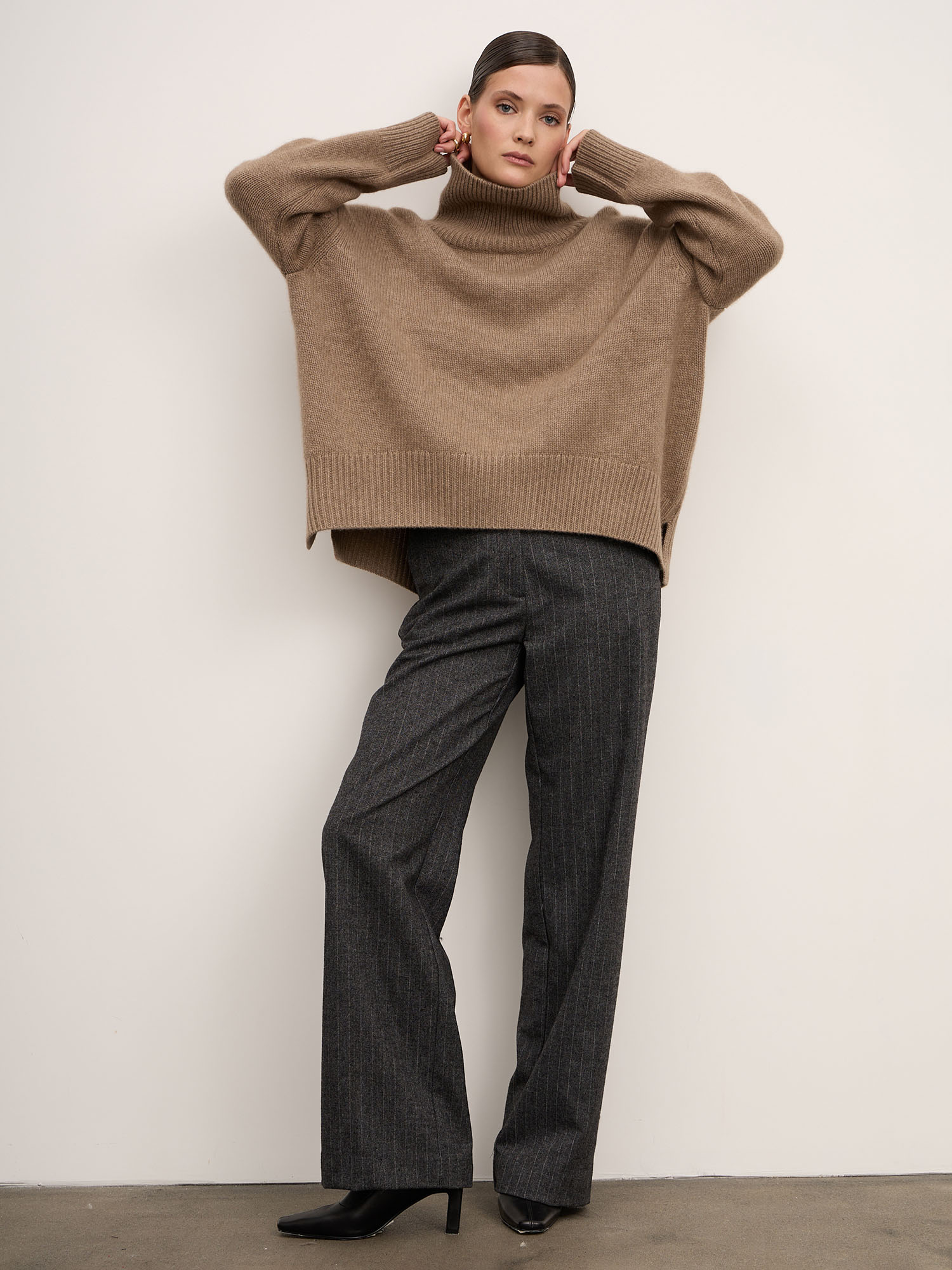 - классическими брюками прямого кроя или широкими шерстяными моделями;